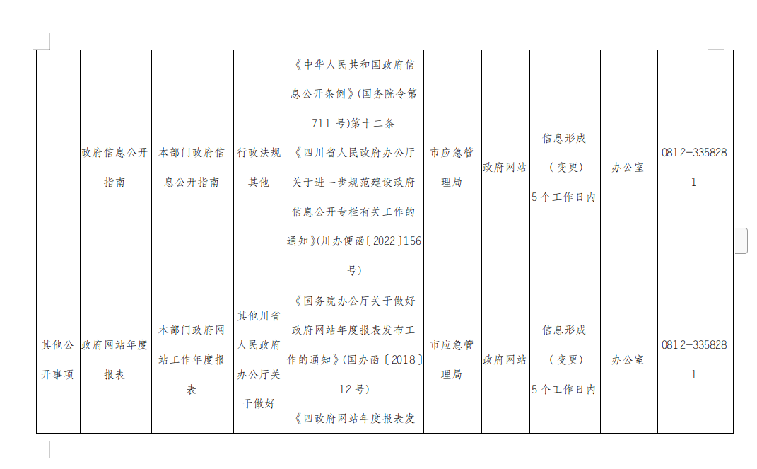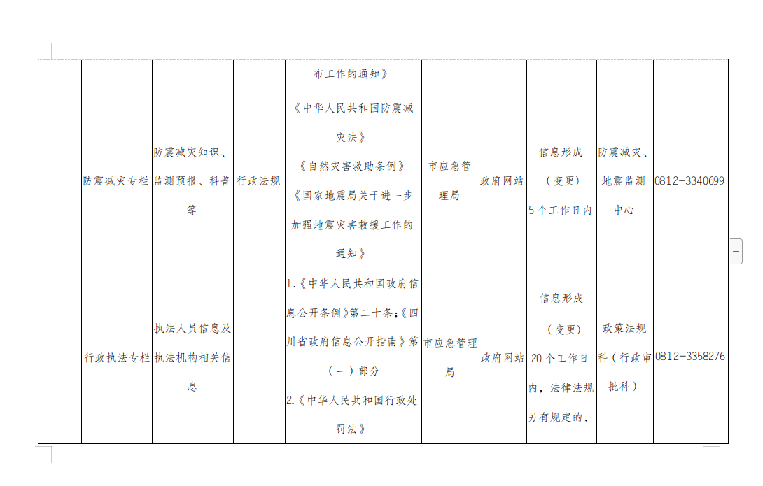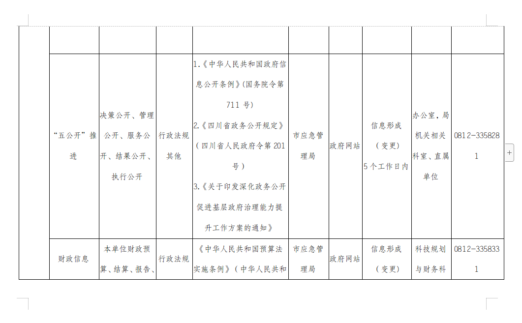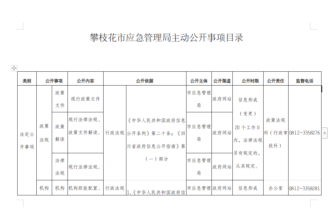 攀枝花市应急管理局主动公开事项目录
