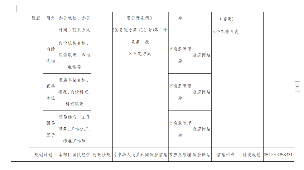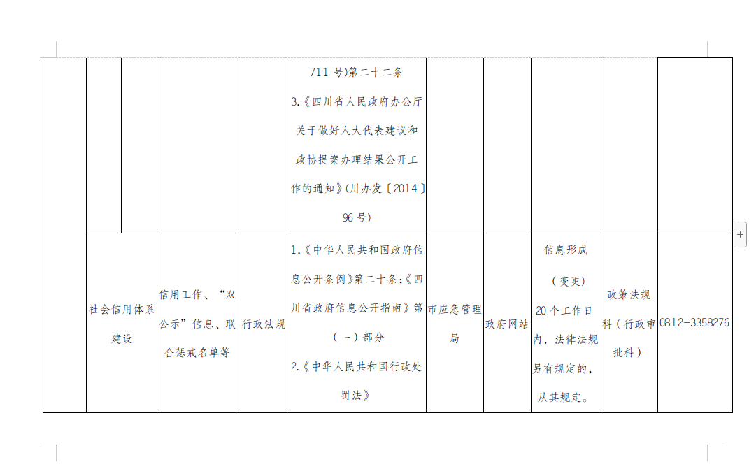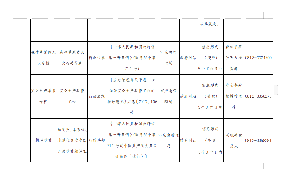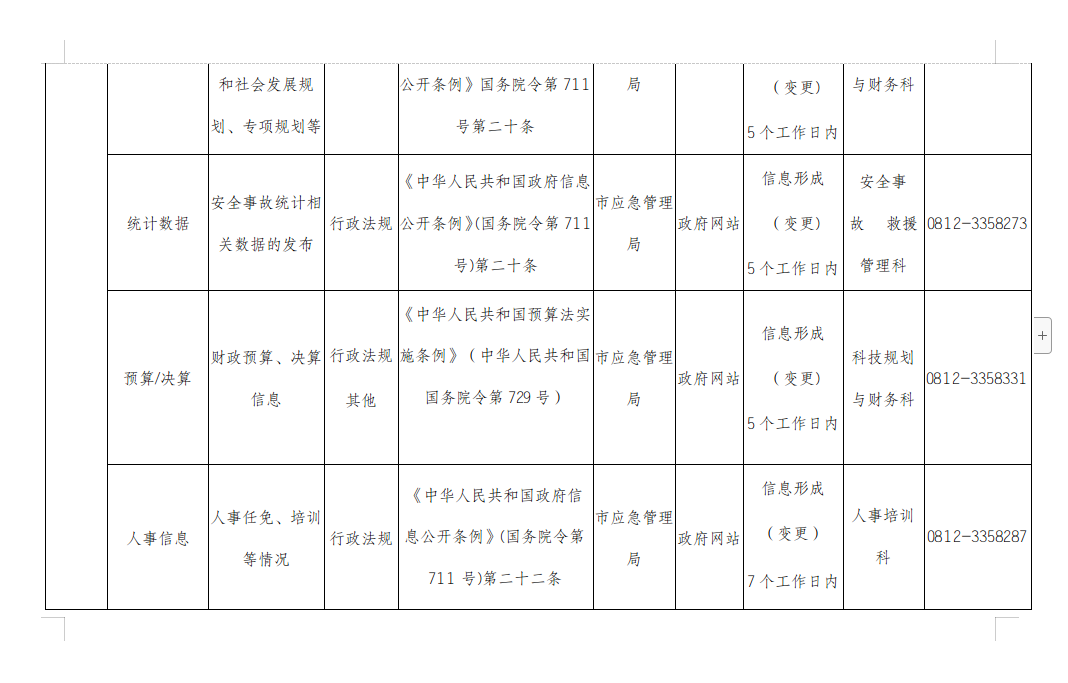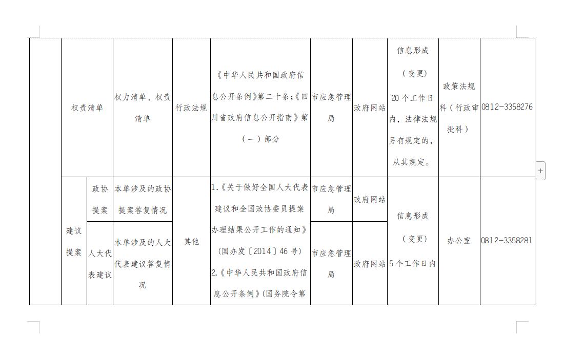 攀枝花市应急管理局主动公开事项目录